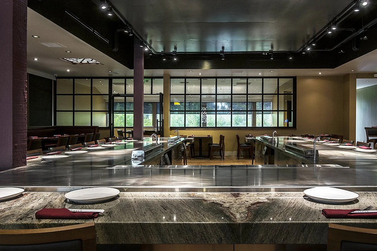 Encore Teppan is home to the largest teppan grill in the United States, which orchestrated an architectural feat of vacating ceiling space in order to accommodate the heat and smoke from the freshly grilled cuisine.